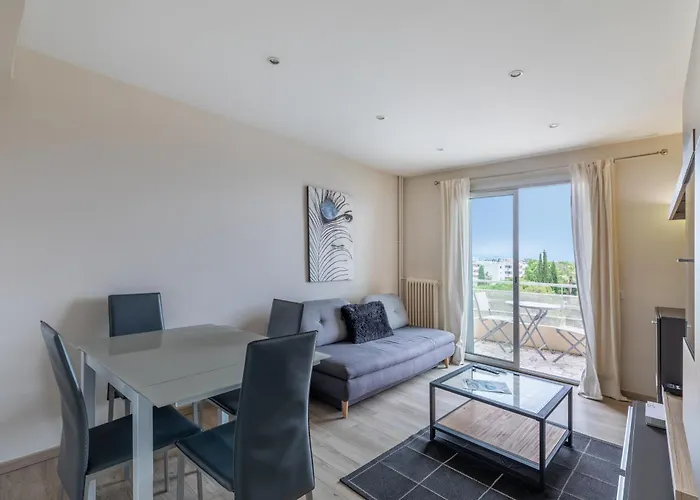 Vue Mer, 2 Pieces Terrasse, 5 Min Du Centre je plážový apartmán ve městě Antibes v 18 minutách chůze od Pláž Salis. Apartmán obsahuje 1 ložnic, stejně jako pohovku, pracovní stůl a místnost na posezení.
